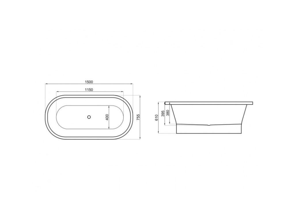 Amona voľne stojaca akrylátová vaňa 150x75, grafitová