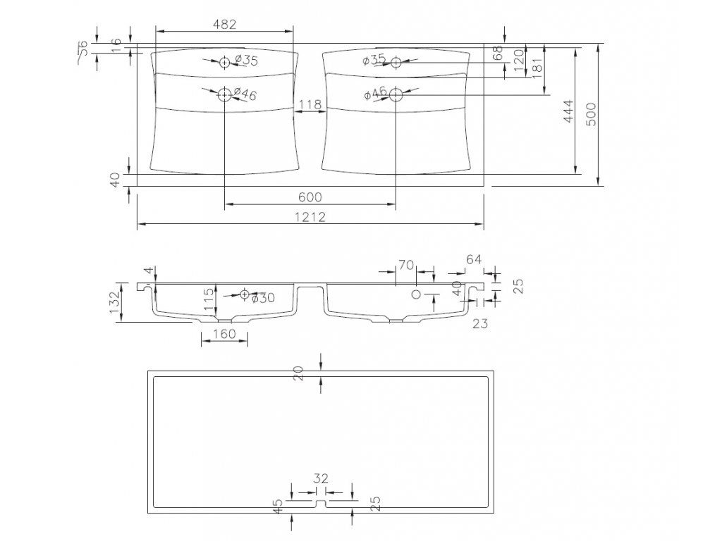 Dvojité umývadlo Norma 120 z liateho mramoru