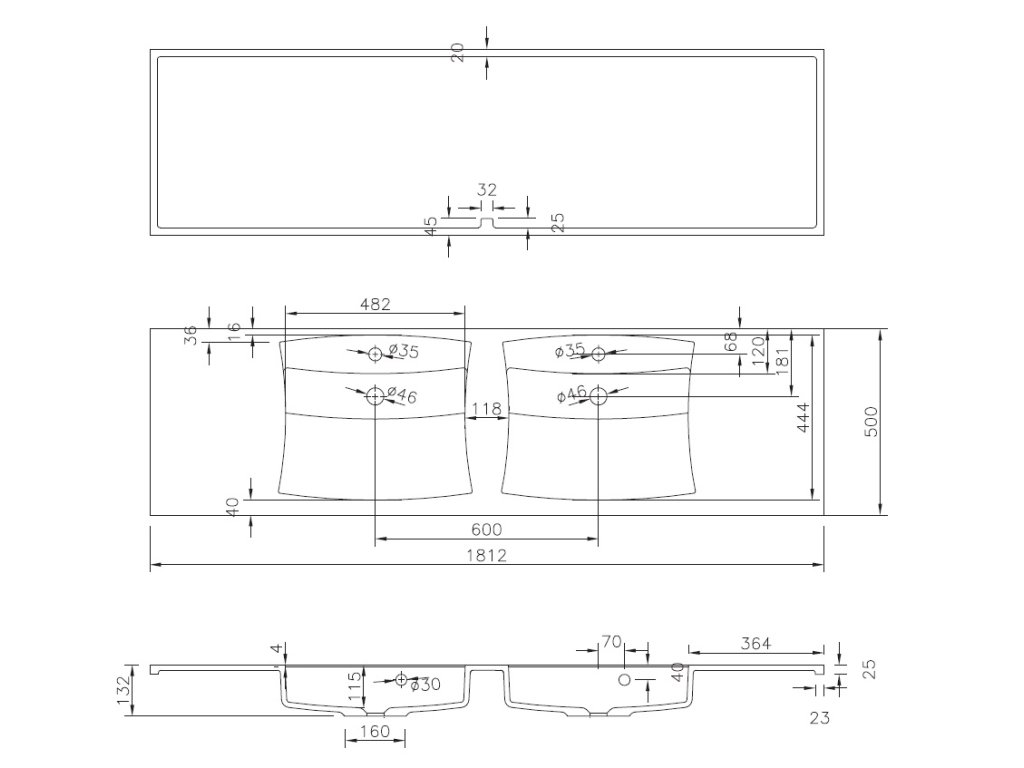 Dvojité umývadlo Norma 180 zapustené do zeme z liateho mramoru