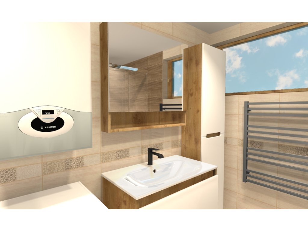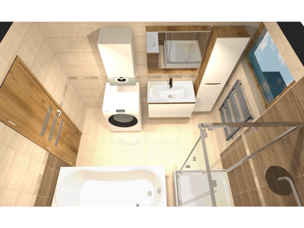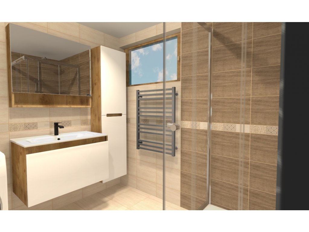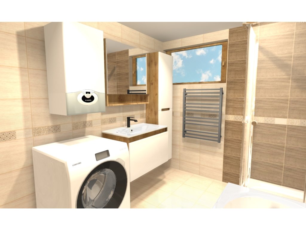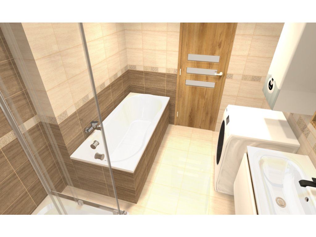 Keďže si zákazník želal anatomickú vaňu s opierkami na ruky, vybrali sme vaňu Majka Nova 160x70. Sprchový kút tu má štandardný rozmer 90x90 a zákazník si vybral sprchový kút Modern s chrómovými profilmi s akrylátovou vaňou Oskaro 90x90.