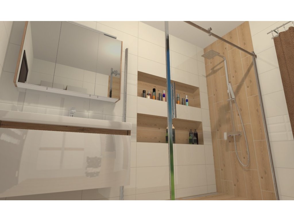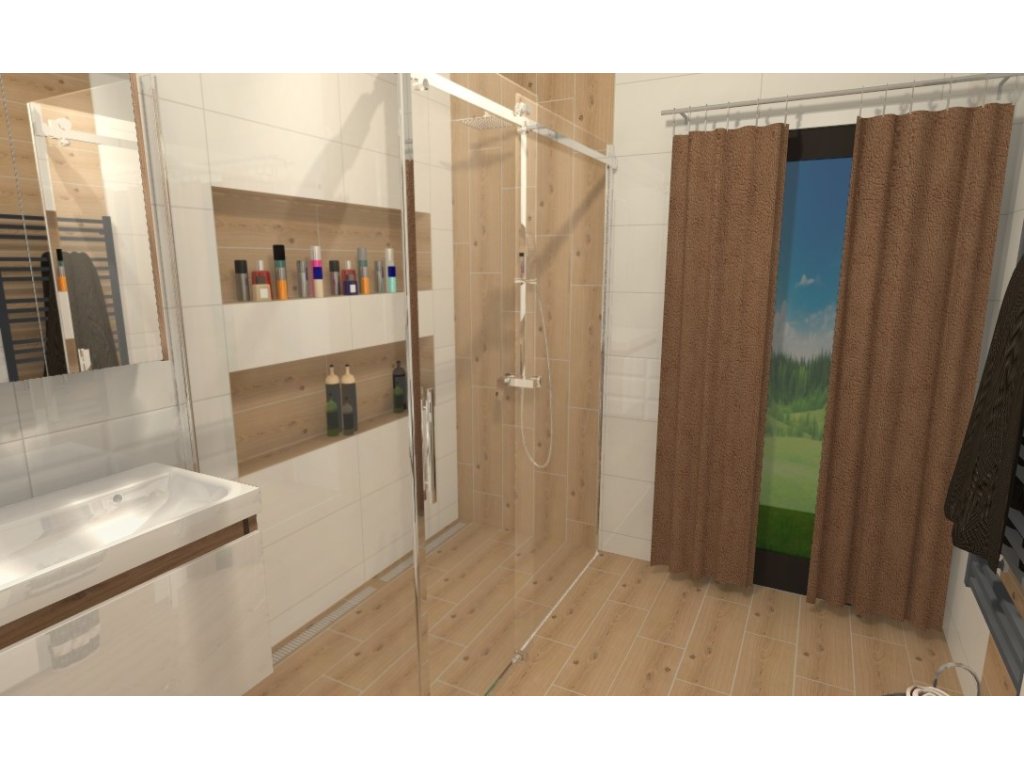Táto dispozícia sa nám najlepšie osvedčila vďaka umiestneniu terasových dverí, takže nikde nie sú "hluché miesta". V sprchovom kúte Hyacint s kráľovským rozmerom 160x90 budú do steny zabudované integrované poličky s osvetlením, ktoré budú praktické a zároveň veľmi dizajnové. Sprchový kút bol vybraný pre svoj neotrelý dizajn, ale aj pre svoju praktickosť a perspektívnu dlhoročnú bezproblémovú funkčnosť. Otváranie nefunguje na princípe klasických posuvných ložísk, ale hnacou silou skla sú veľké, úplne bezproblémové roletky, zavesené na hornej priebežnej lište sprchového kúta.