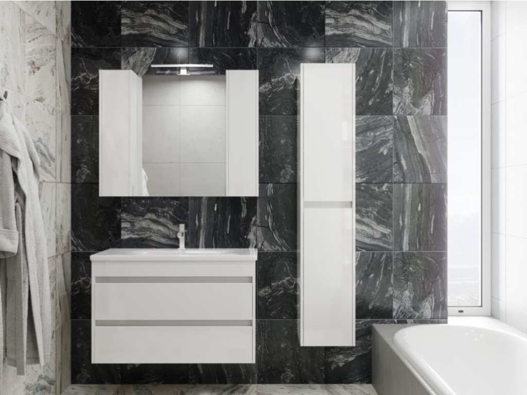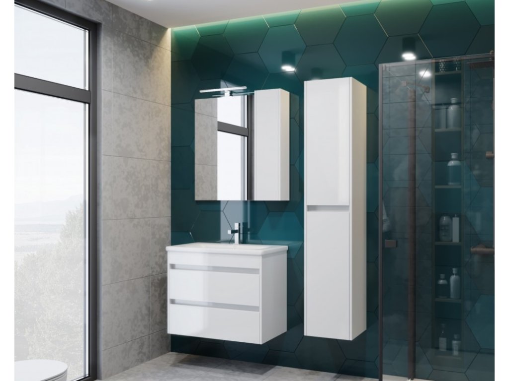 Predstavujeme úplne nový luxusný kúpeľňový nábytok, ktorý poteší každého. Táto absolútne dizajnová skrinka s umývadlom by rozhodne nemala chýbať v žiadnej modernej kúpeľni. Skrinka je vyrobená z drevotrieskovej dosky s hrúbkou 16 mm. Umývadlo, ktoré je súčasťou skrinky, je vyrobené z kvalitnej sanitárnej keramiky. Povrchová úprava je biely lesklý lak. Veľkou výhodou tejto skrinky je jej jemné zatváranie, vďaka ktorému je používanie skrinky absolútne pohodlné. Pocíťte výhody a úložný priestor, ktorý vám táto skrinka poskytne.