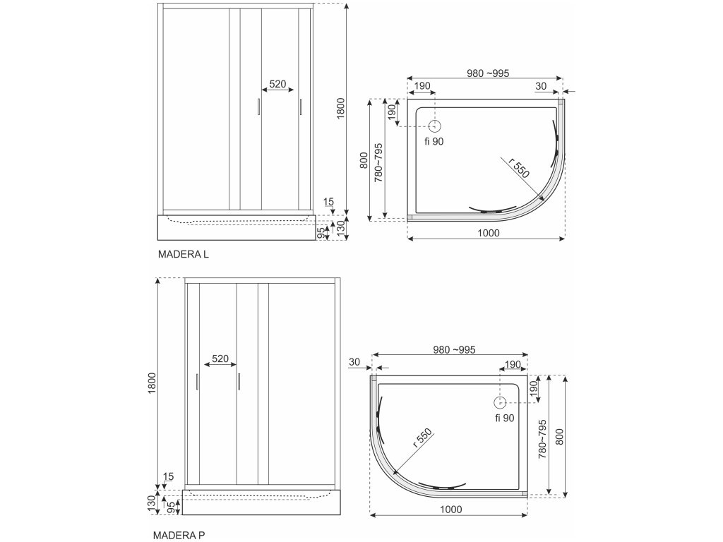 - nákres sprchového kúta nájdete v galérii produktov (nákres zahŕňa vaničku, ktorá nie je súčasťou tohto produktu)