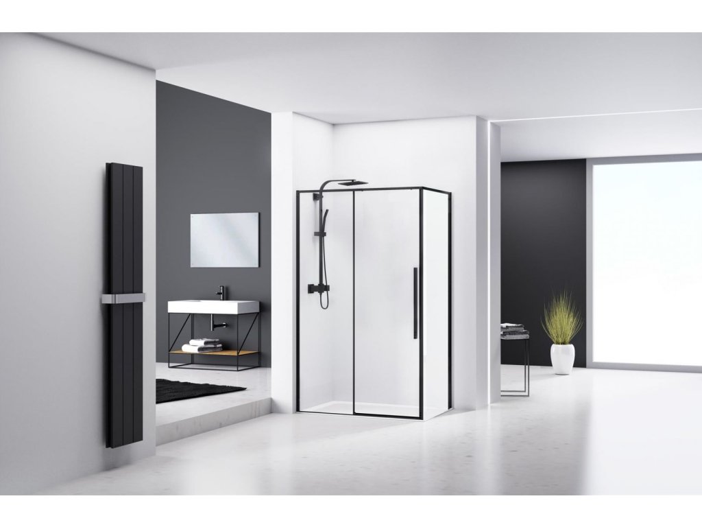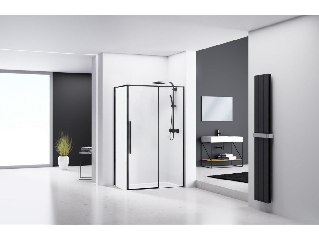 Solar je nápadný, nadčasový a dizajnový sprchový kút, ktorý je vyrobený z tých najlepších materiálov. Čierna farba je lídrom na trhu kúpeľňových interiérov, takže jej matné čierne profily dodávajú kútu ten správny nádych modernosti. Sklo je odolné voči nečistotám, škvrnám a ľahko sa čistí. Kombinácia čiernych profilov a čiernych vertikálnych štvorcových úchytiek spolu s priehľadným sklom dokonale ladí s modernou trendovou kúpeľňou.