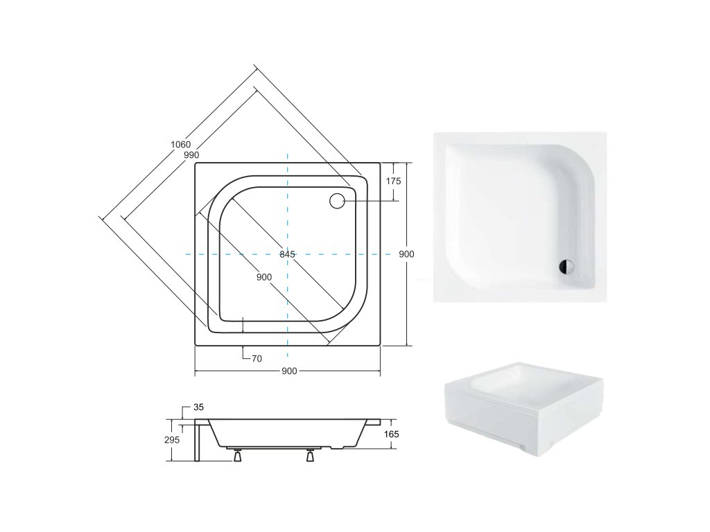 Veľmi praktická a kvalitná štvorcová sprchová vanička, vyrobená z kvalitného sanitárneho akrylátu (vystuženého živicou).