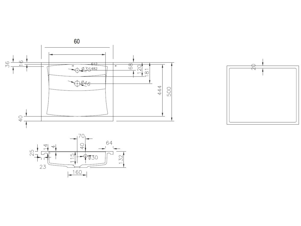 Umývadlo zapustené Norma 60 z liateho mramoru
