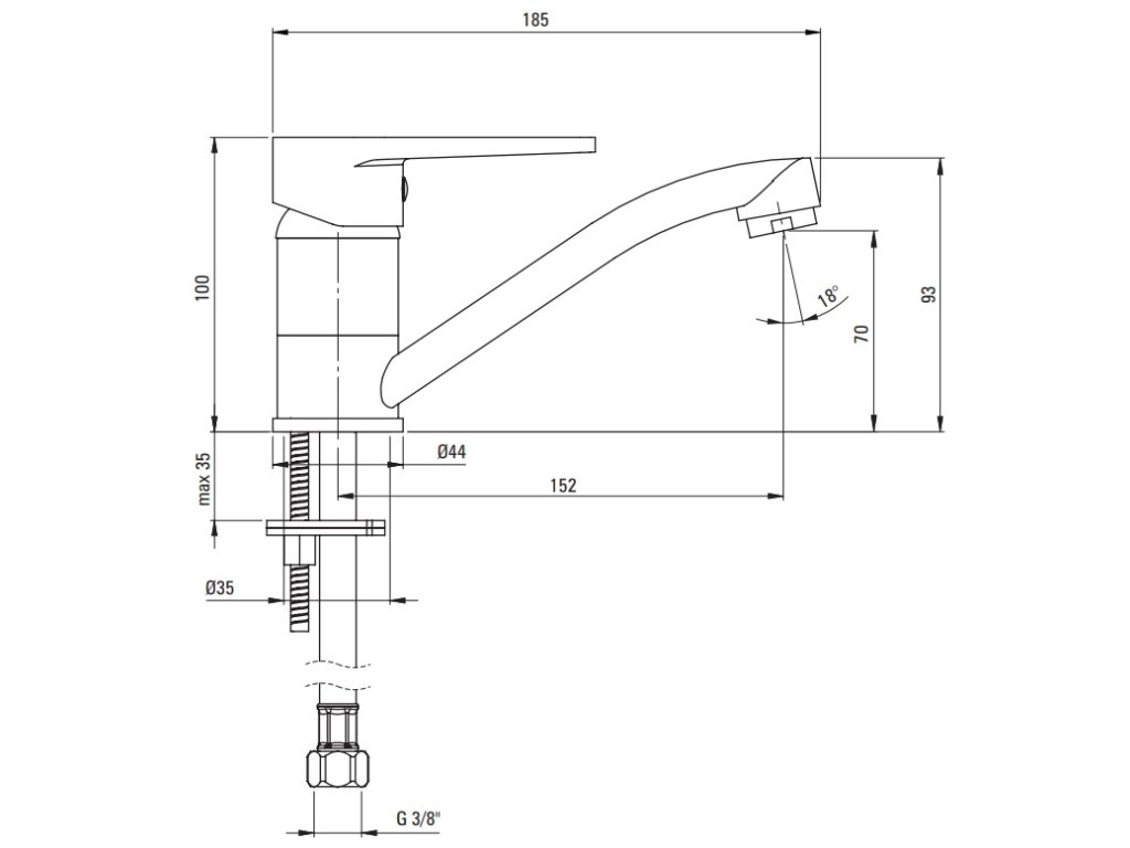 - prakticky navrhnutá páka na reguláciu teploty, spustenie a vypnutie vody
