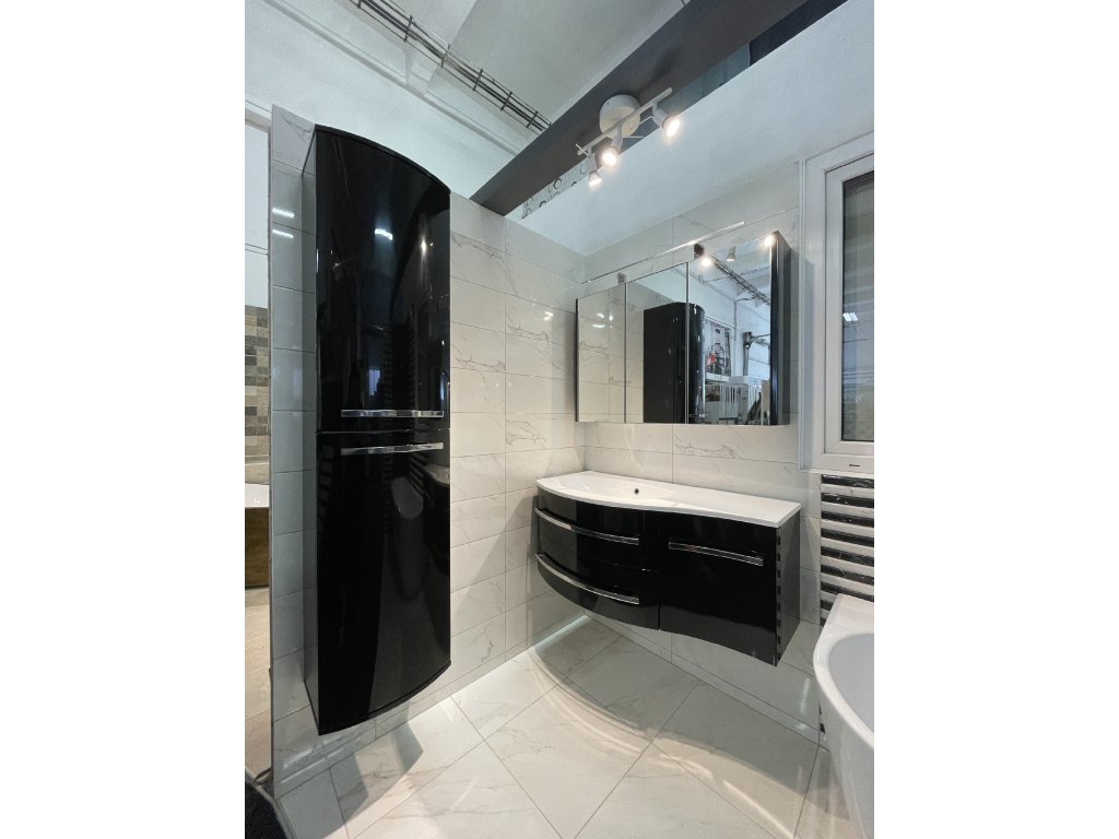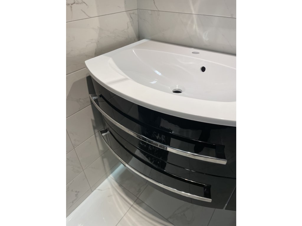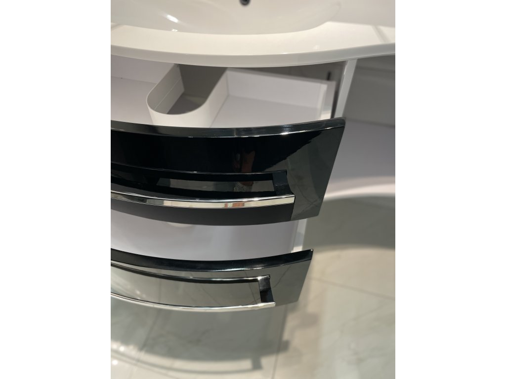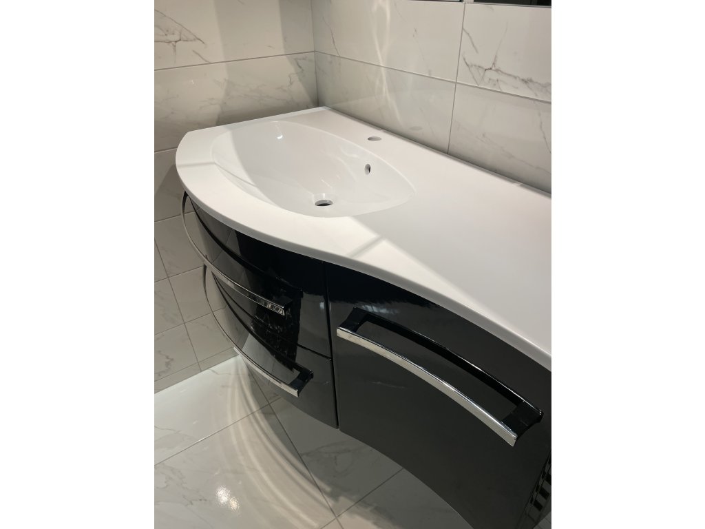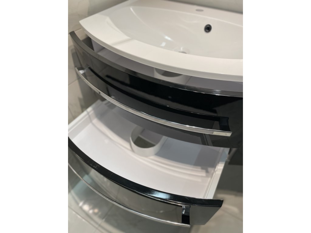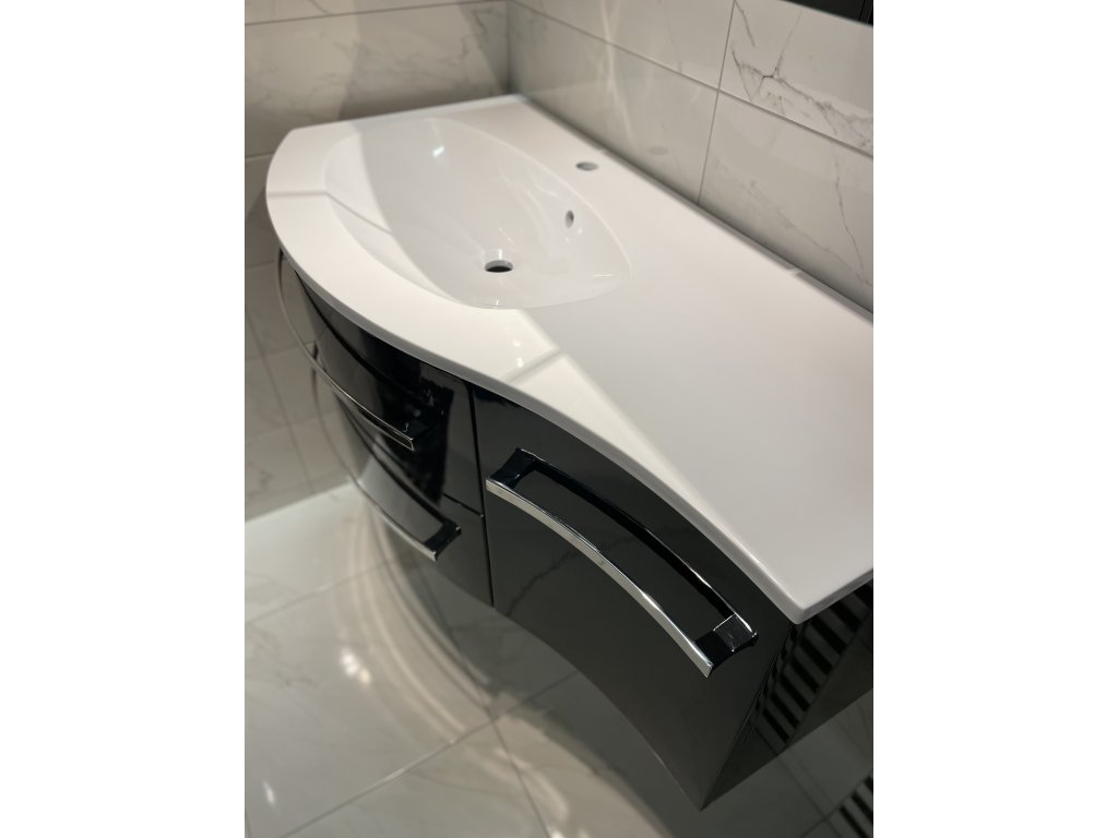Predstavujeme úplne nový luxusný kúpeľňový nábytok, ktorý poteší každého. Táto absolútne dizajnová skrinka s umývadlom by rozhodne nemala chýbať v žiadnej modernej kúpeľni. Bočnice skrinky sú vyrobené z 16 mm MDF dosky. Predná časť skrinky je vyrobená z 18 mm MDF. Umývadlo, ktoré je súčasťou skrinky, je vyrobené z liateho mramoru. Povrchová úprava je čierna farba potiahnutá transparentným lakom. Úchyty skrinky sú vyrobené z nehrdzavejúcej ocele. Skrinka je určená na zavesenie na stenu, čo zaručuje bezproblémové čistenie. Veľkou výhodou tejto skrinky je jej jemné zatváranie, vďaka ktorému je používanie skrinky absolútne pohodlné. Pocíťte výhody a úložný priestor, ktorý vám táto skrinka poskytuje.