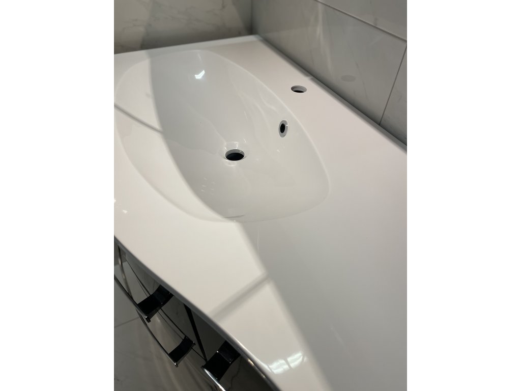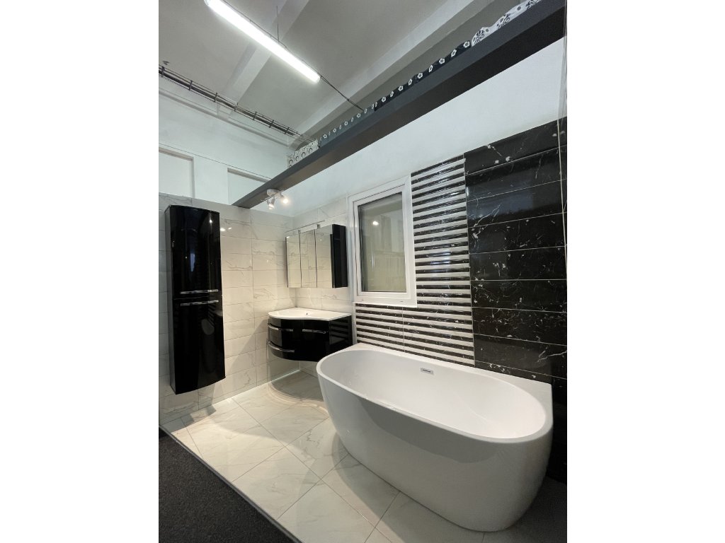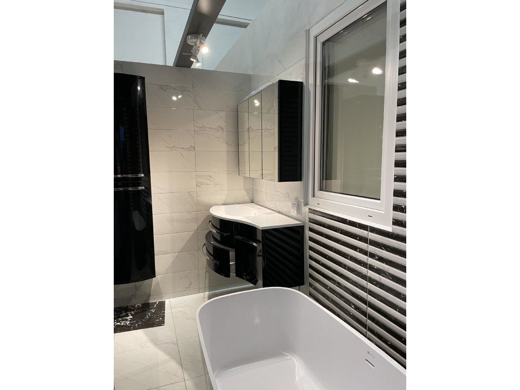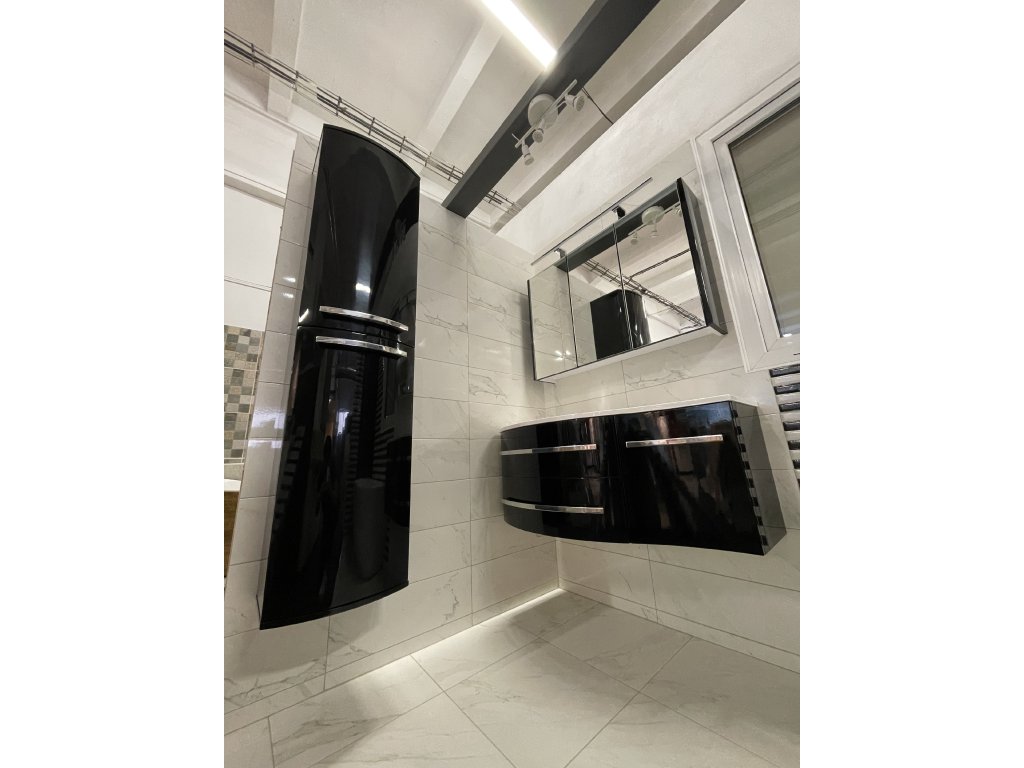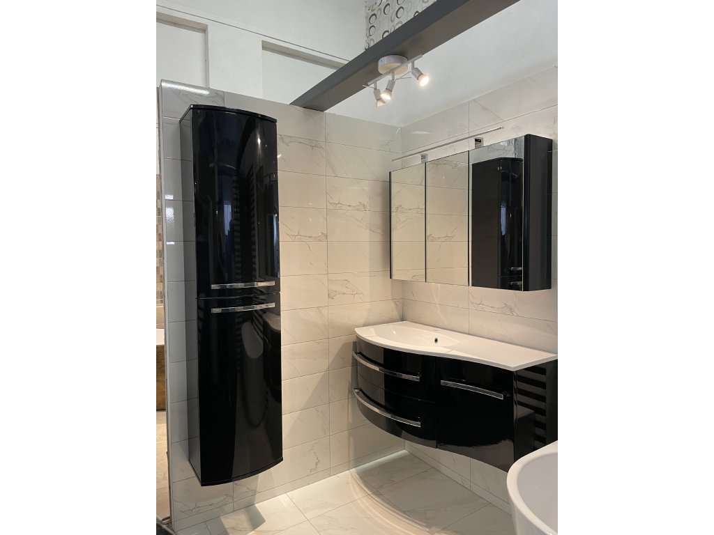 Predstavujeme úplne nový luxusný kúpeľňový nábytok, ktorý poteší každého. Táto absolútne dizajnová skrinka s umývadlom by rozhodne nemala chýbať v žiadnej modernej kúpeľni. Bočnice skrinky sú vyrobené z 16 mm MDF dosky. Predná časť skrinky je vyrobená z 18 mm MDF. Umývadlo, ktoré je súčasťou skrinky, je vyrobené z liateho mramoru. Povrchová úprava je čierna farba potiahnutá transparentným lakom. Úchyty skrinky sú vyrobené z nehrdzavejúcej ocele. Skrinka je určená na zavesenie na stenu, čo zaručuje bezproblémové čistenie. Veľkou výhodou tejto skrinky je jej jemné zatváranie, vďaka ktorému je používanie skrinky absolútne pohodlné. Pocíťte výhody a úložný priestor, ktorý vám táto skrinka poskytuje.