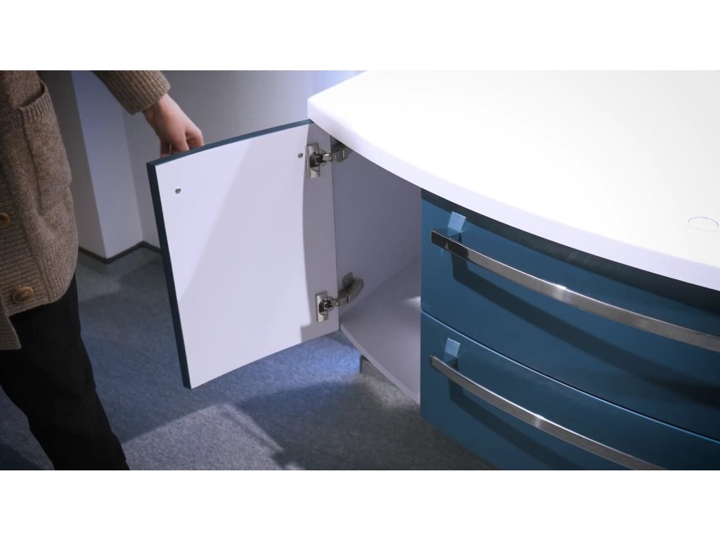 Predstavujeme úplne nový luxusný kúpeľňový nábytok, ktorý poteší každého. Táto absolútne dizajnová skrinka s umývadlom by rozhodne nemala chýbať v žiadnej modernej kúpeľni. Bočné strany skrinky sú vyrobené z 16 mm MDF. Predná časť skrinky je vyrobená z 18 mm MDF. Umývadlo, ktoré je súčasťou skrinky, je vyrobené z liateho mramoru. Povrchová úprava je modrá farba potiahnutá transparentným lakom. Úchyty skrinky sú vyrobené z nehrdzavejúcej ocele. Skrinka je určená na zavesenie na stenu, čo zaručuje bezproblémové čistenie. Veľkou výhodou tejto skrinky je jej jemné zatváranie, vďaka ktorému je používanie skrinky absolútne pohodlné. Pocíťte výhody a úložný priestor, ktorý vám táto skrinka poskytuje.