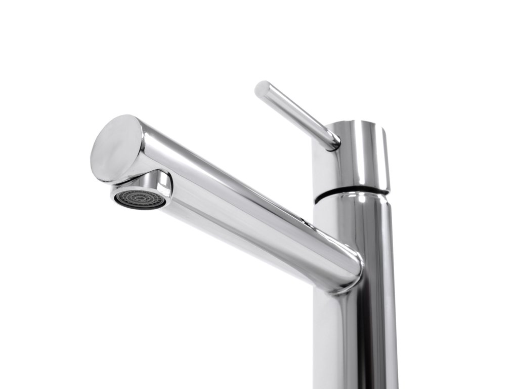 Umývadlová batéria vyrobená z mosadze najvyššej kvality. Tento materiál zaručuje spoľahlivosť a bezproblémovú prevádzku výrobku po mnoho rokov. Krásny tvar batérie dokonale ladí s akýmkoľvek interiérom kúpeľne. Dizajnová a moderná batéria na pult k umývadlu alebo drezu. Je vyrobená z mosadze pokrytej lesklým chrómom. Vďaka špeciálnemu spôsobu výroby je veľmi odolná a ľahko sa čistí.