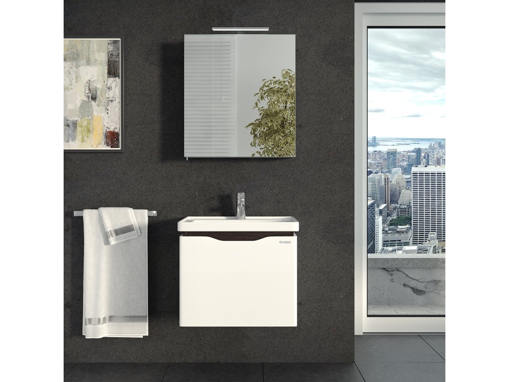 - moderný dizajn - vďaka použitiu mimoriadne tenkej a odolnej výrobnej dosky použitej na dvierkach galérie je dizajn tejto zrkadlovej skrinky mimoriadne minimalistický a decentný (12 mm)
